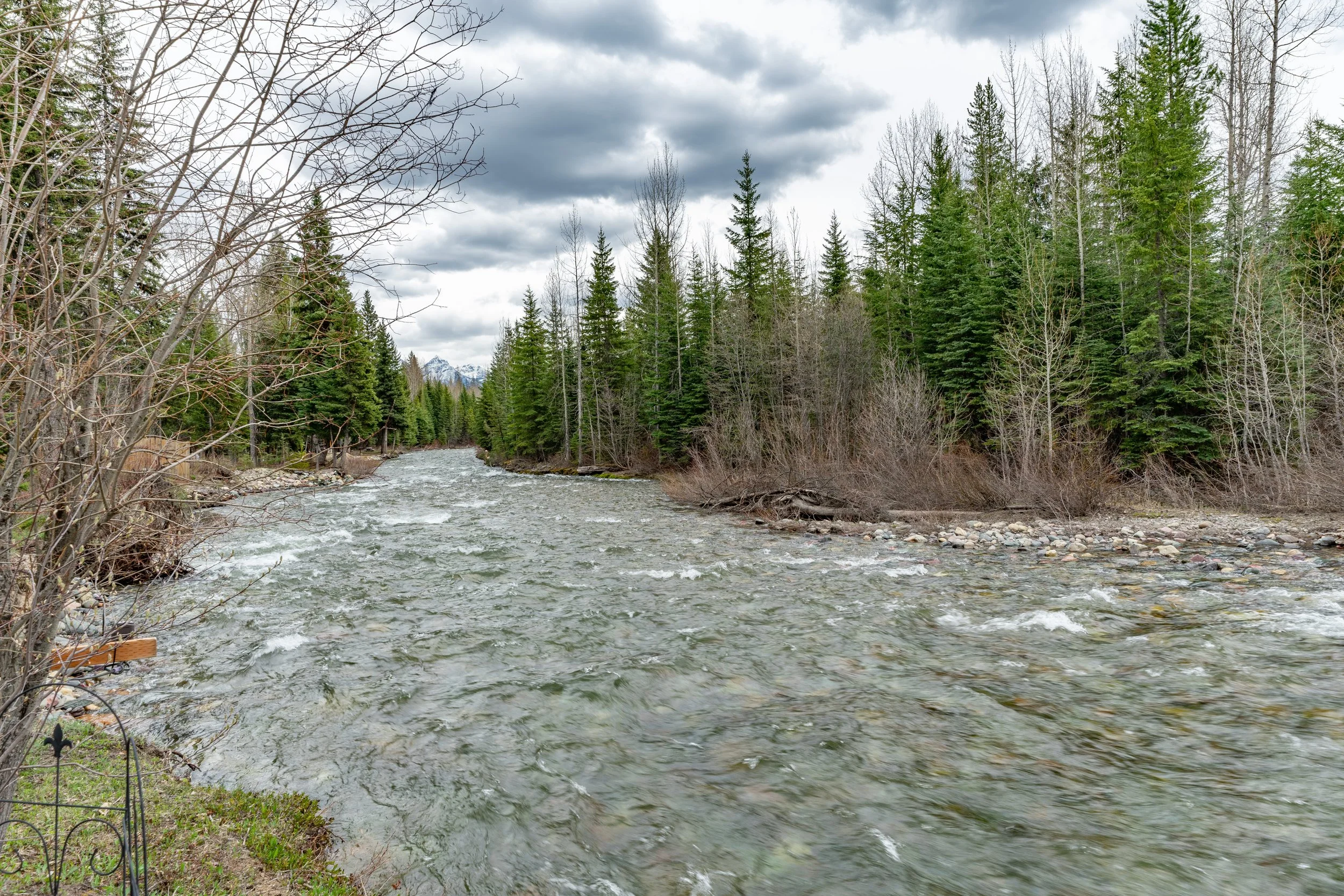 Enjoy the sights and sounds of scenic Whale Creek a tributary of the North Fork of the Flathead River from the large deck or picture windows at this wilderness escape!